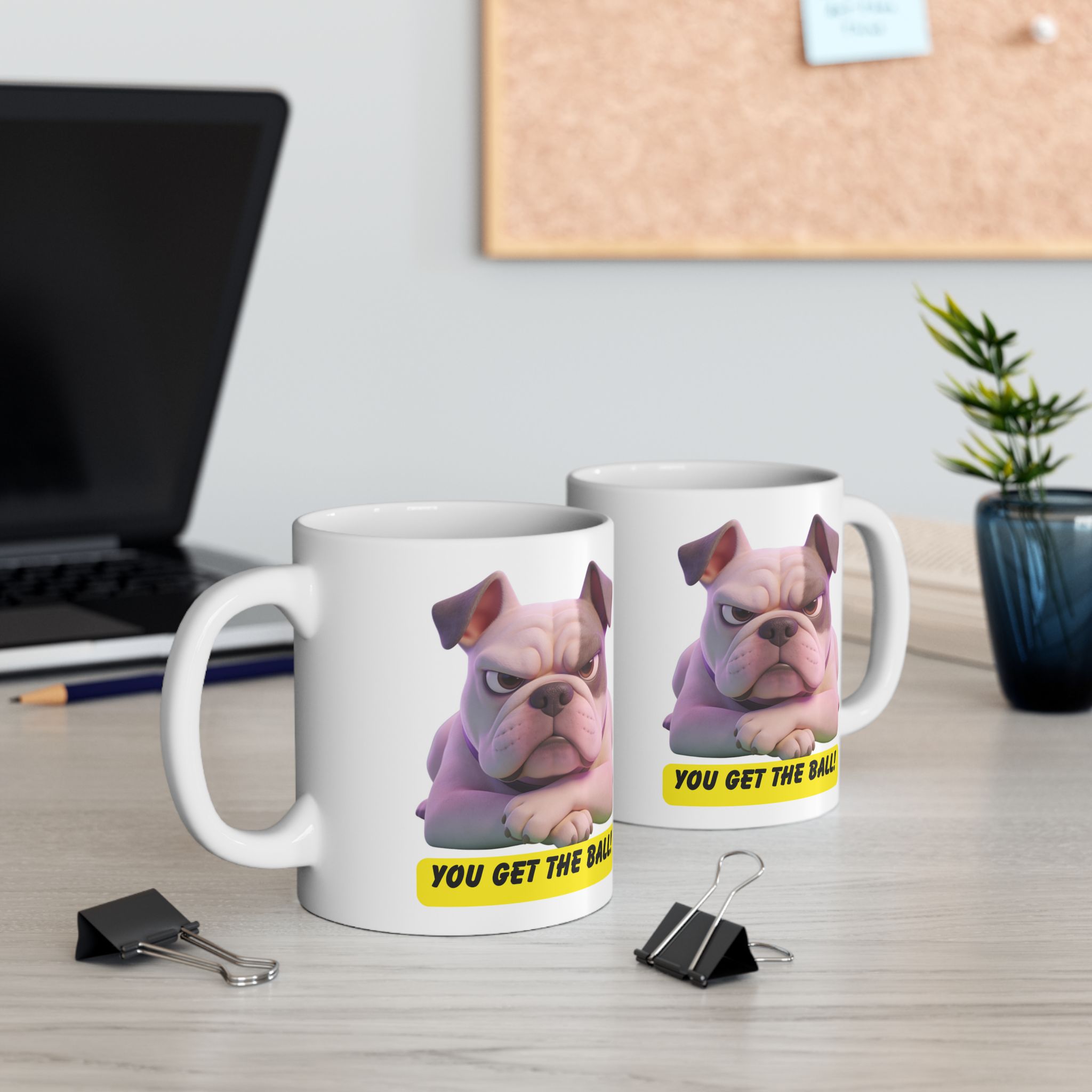 A glossy ceramic mug that brings a little daily cheer to slow mornings and late-night work sessions. The design features a soft, expressive pug illustration with a friendly caption in a bright yellow label, giving the mug a playful, cheeky personality. Lightweight enough for everyday use, yet robust in print and finish so the colors stay vivid through repeated washes. It sits comfortably in hand with a classic C-handle and comes in two sizes to match how you like your coffee, tea, or cocoa. Safe to pop in the microwave and dishwasher, and made from lead- and BPA-free white ceramic for worry-free sipping.